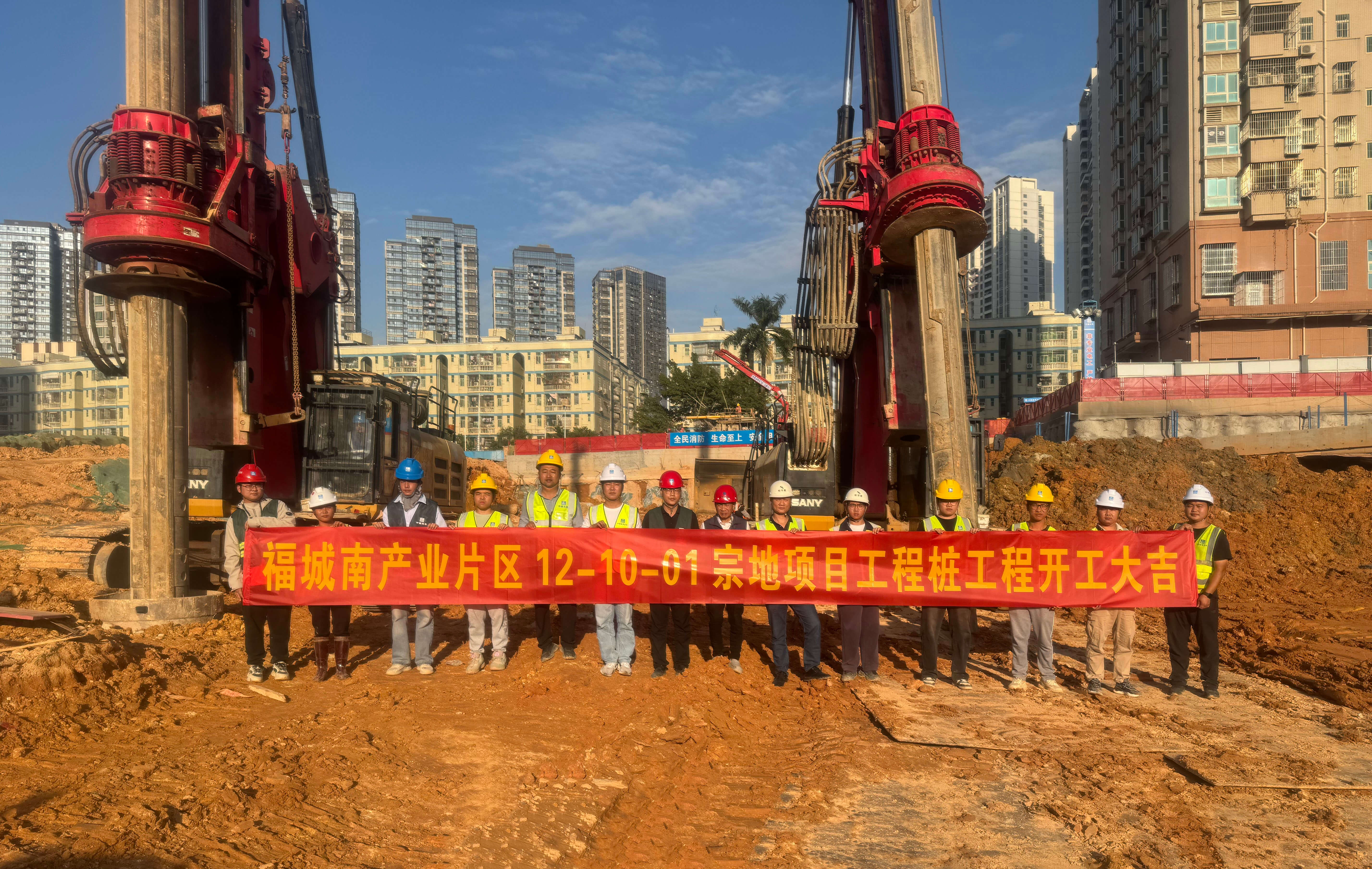 2025 年 11 月 29 日,由我司承接的福城南产业片区 12-10-01 宗地桩基础工程正式开工!该项目工程桩工程量大、工期紧张、施工机械多、交叉作业密集、安全管理难度大、临近居民区等诸多考验,对施工组织与管控能力要求极高。此次委托是甲方对我司综合实力的认可,更是团队迎接挑战、展示实力的重要契机。
